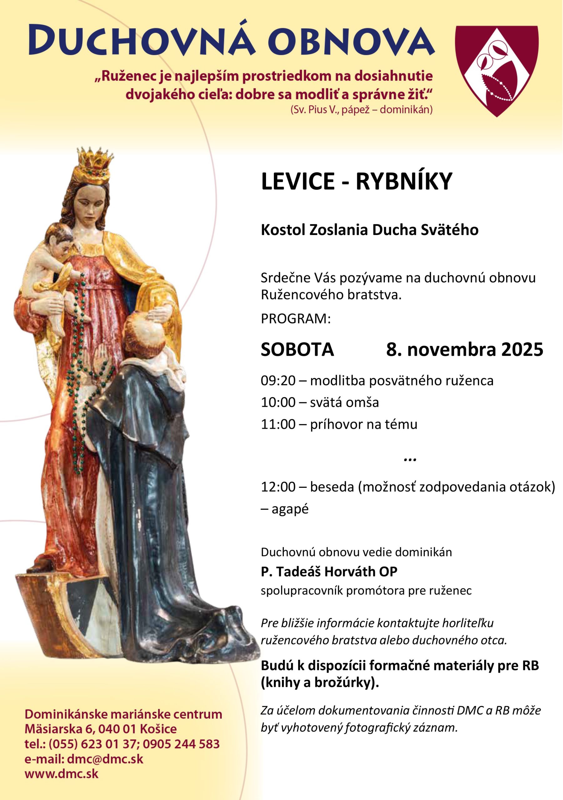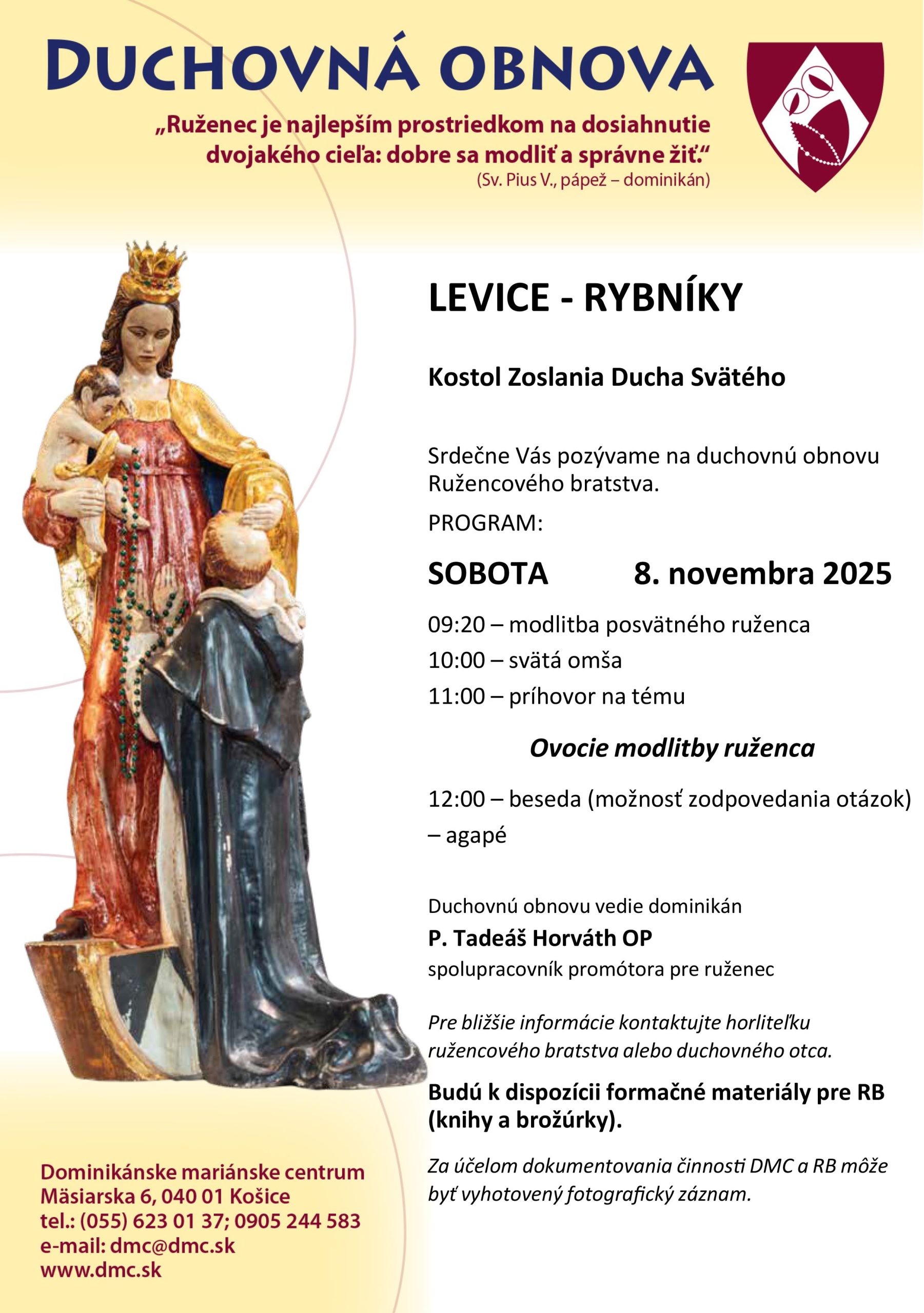 - Nahlásenie: štvrtok po večernej sv. omši okrem prvopiatkového týždňa.